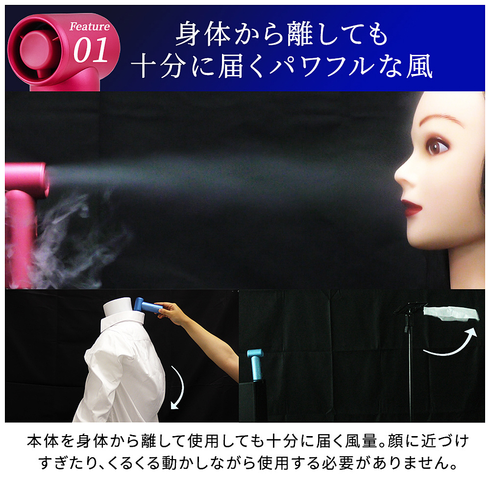 身体から離しても十分に届くパワフルな風