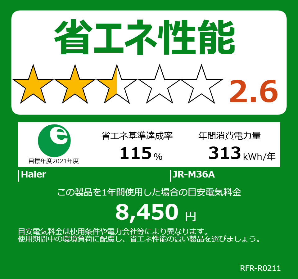 冷蔵庫 スノーホワイト JR-M36A-W [幅59.5cm /355L /2ドア /右開きタイプ /2025年]
