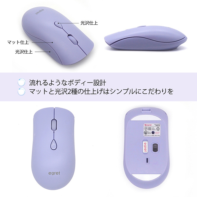 マウス 「SweetiE」EGRET(イーグレット) ラベンダーラテ EM23-S1(B) [光学式 /無線(ワイヤレス) /6ボタン /Bluetooth・USB]