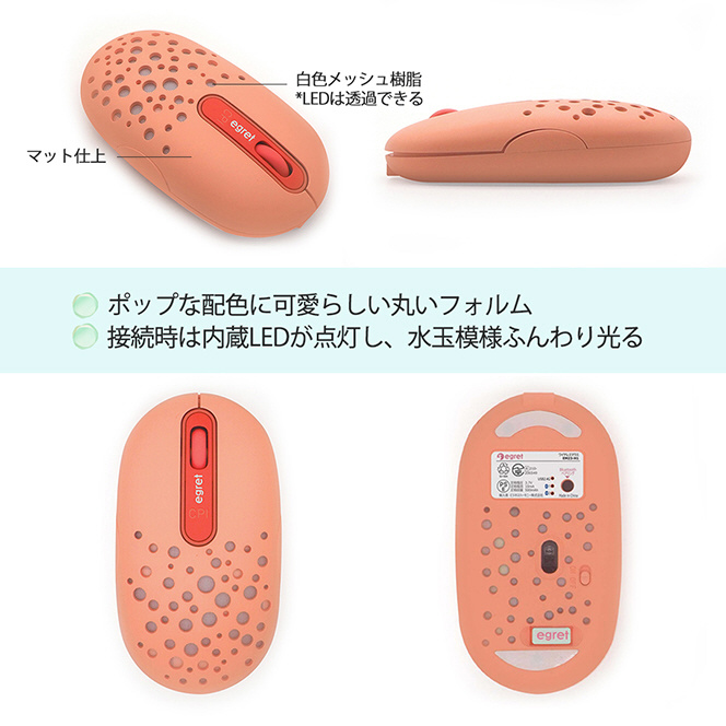 マウス 「HappiE」EGRET(イーグレット) コーラル EM23-H1(B) [光学式 /無線(ワイヤレス) /6ボタン /Bluetooth・USB]