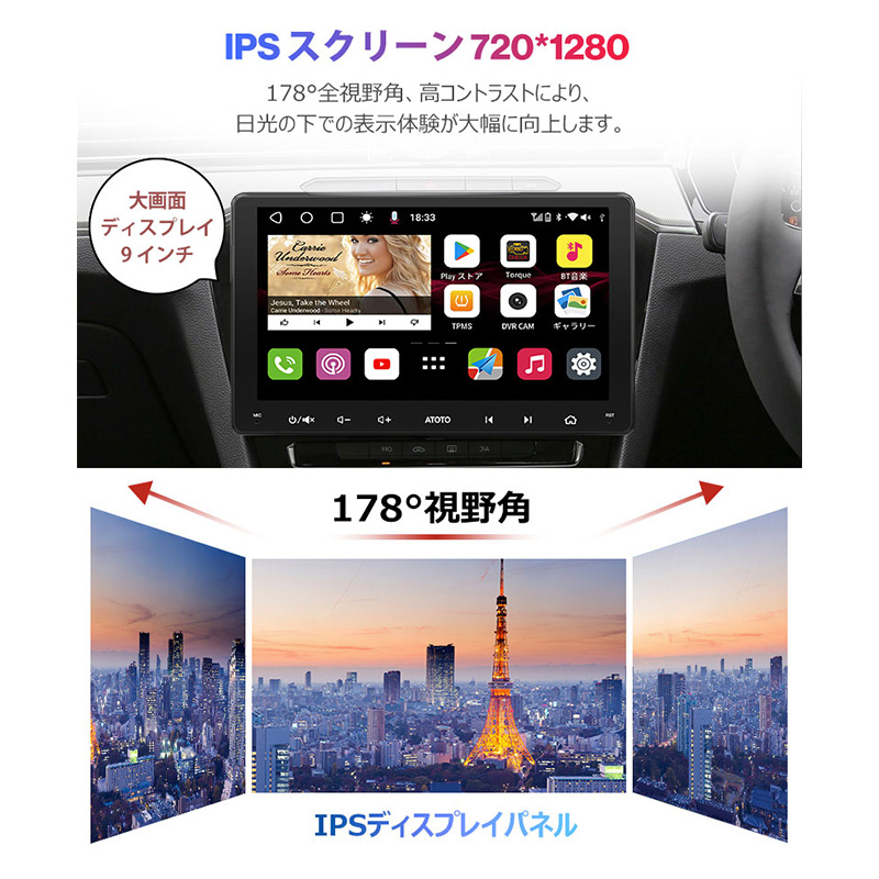 ATOTO S8 Gen3は、9インチ1280X720 HD QLEDの大きく広いタッチスクリーンを提供しますが、エアベント、ノブ、またはボタンを遮らない設計です。178°の全視野角で、多画面作業と運転の安全性を向上させます。ケーブルやUSBプラグなしでスムーズな操作が可能です。効率的な12nm SoCとARM Cortexオクタコアプロセッサーで高性能を実現。ATOTO AICE UI 11.0 on Android Qで深いカスタマイズができます。4G LTE、Wi-Fiホットスポット、Bluetooth、USBテザリングの4つのインターネット接続オプションを提供します。