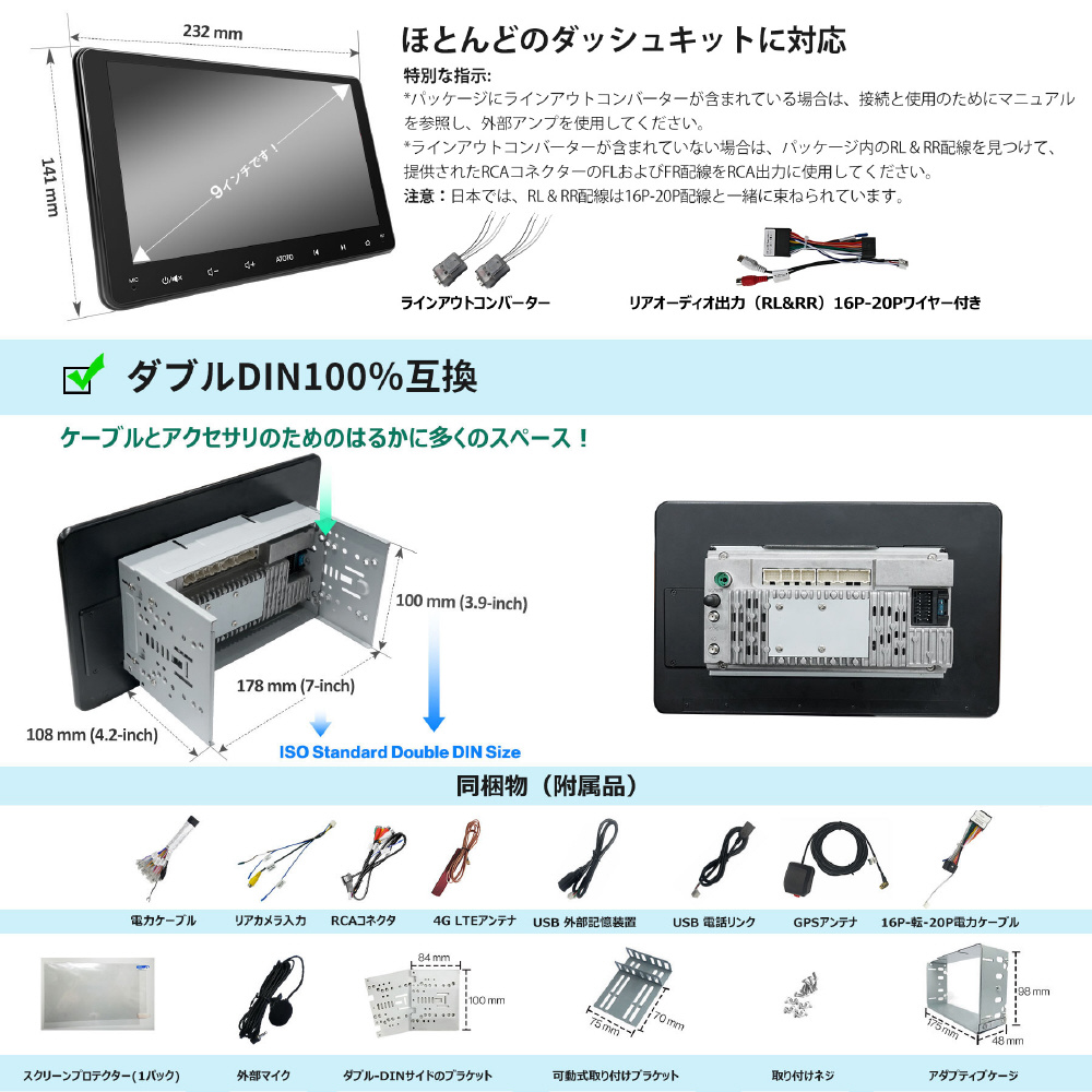 S8G2094MS-A カーナビ 9インチ 4G+32G 2DIN 内蔵4G, WiFi/BT/USB テザリング, 8コア、Android 4+32Gメモリ, スピード補償音量制御, 内蔵DSP&デュアルBluetooth, GPS追跡(TrackHUアプリ) & DriveChat AIドライビングアシスタント