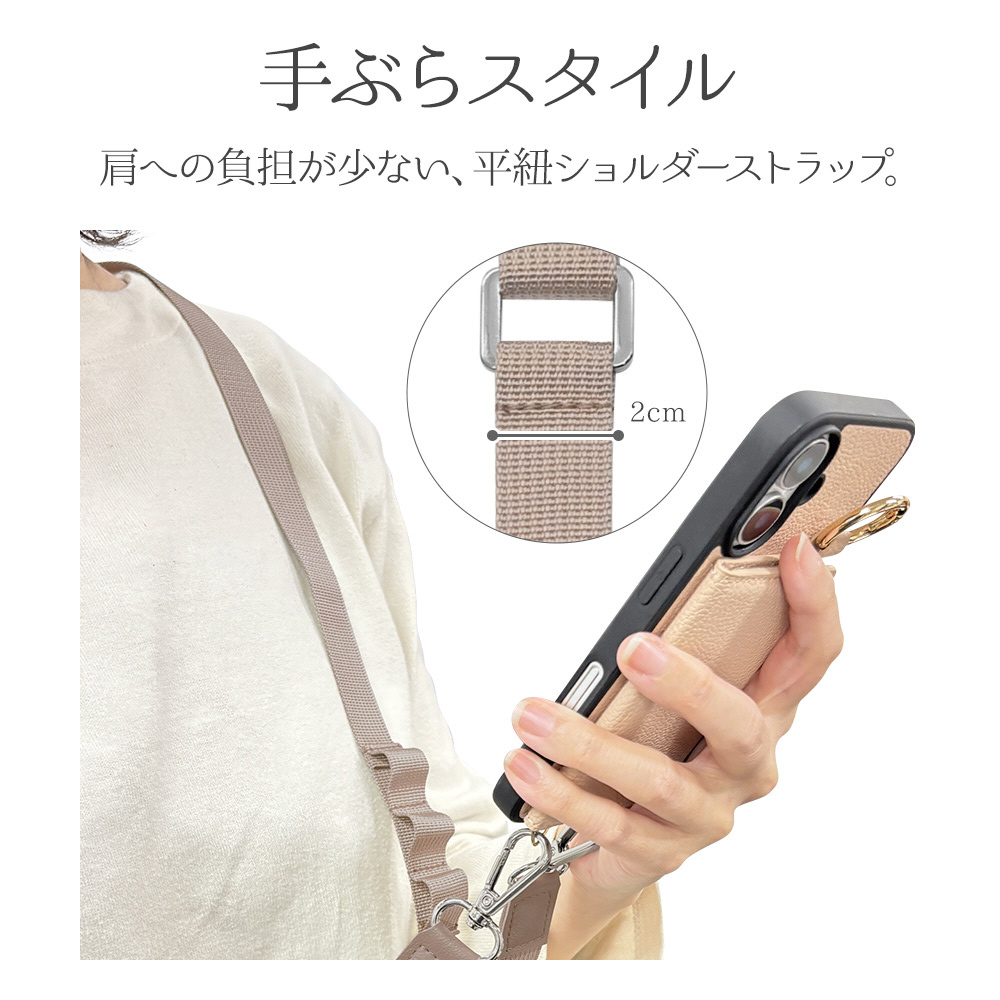 小物が引っ掛けられるループが3つ付属しており、スマートフォンと一緒に持ち歩きができます。