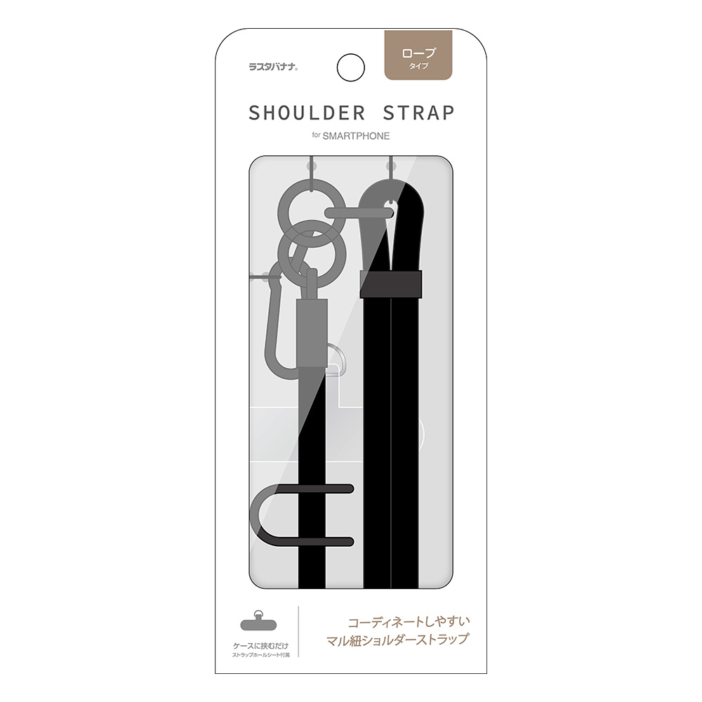 本製品はスマートフォン用ショルダーストラップとストラップホールシートのセット商品です。
