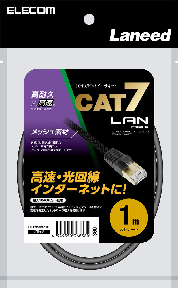 LD-TWSM/BK10 LANケーブル 高耐久 ブラック [1m /カテゴリー7 /メッシュ]
