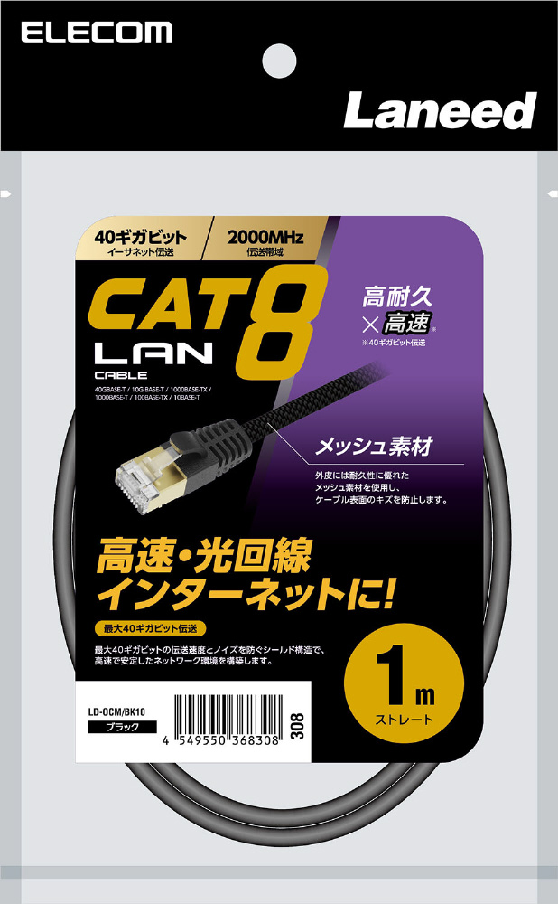 高速光通信に最適な40ギガビットイーサネット(40GBASE-T)の高耐久Cat8 LANケーブルです。