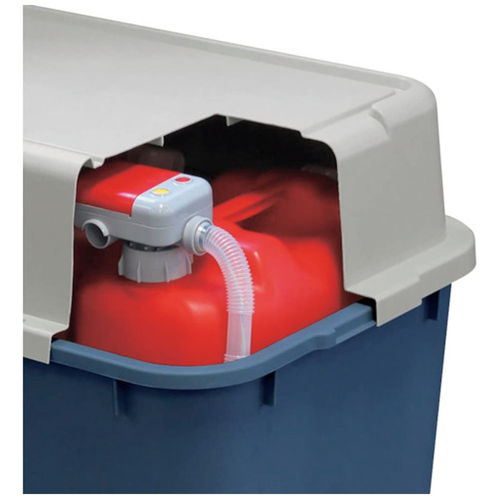 ■ポリタンクに直付電動ポンプを取り付けたまま収納可能です(ポンプ取付時高さ450mmまで)。