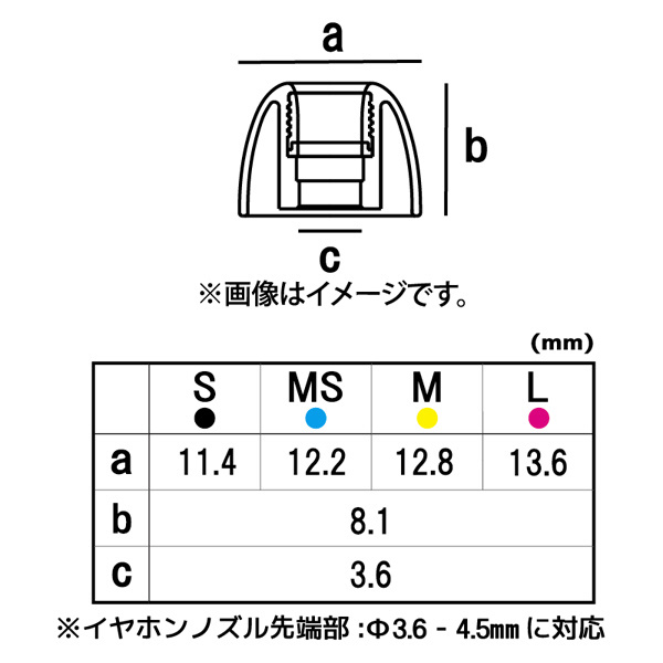 軸内径:3.6 mm (イヤホンノズル先端部:Φ3.6-4.5 mm に対応)
