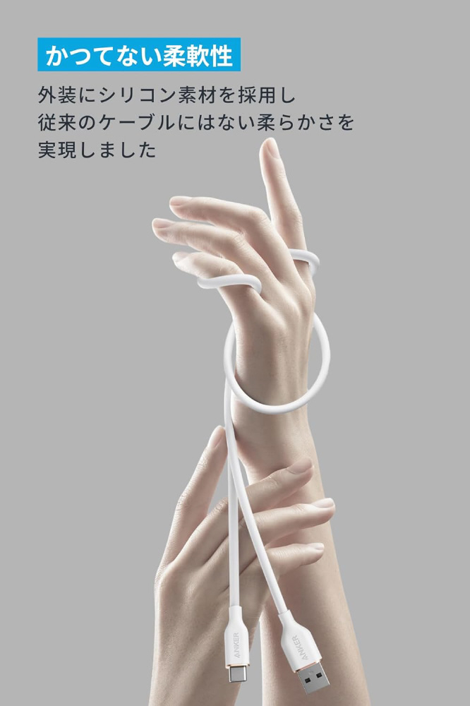 シリコン素材のやわらかなUSB-A&USB-Cケーブル