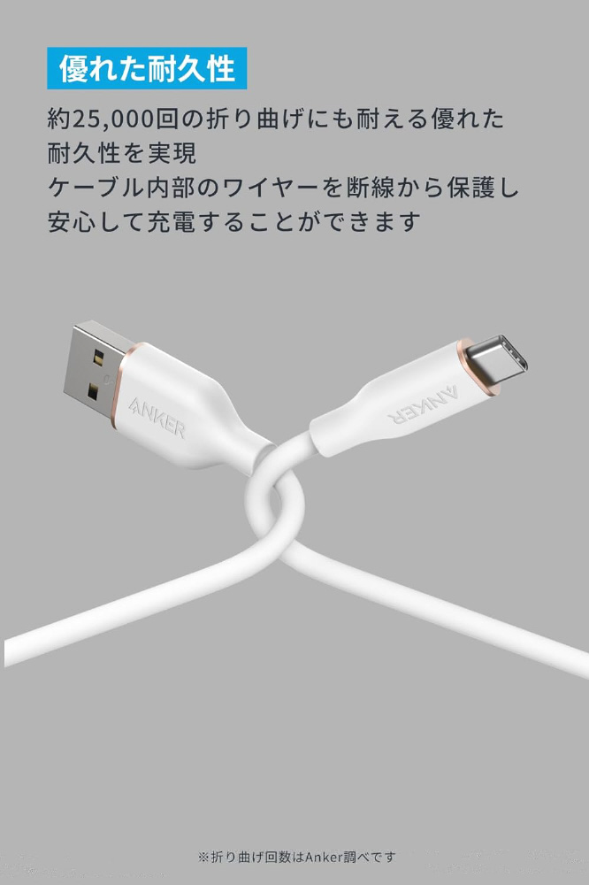 約25,000回の折り曲げにも耐える優れた耐久性を実現しているため、ケーブル内部のワイヤーを断線から保護し、安心して充電することができます。