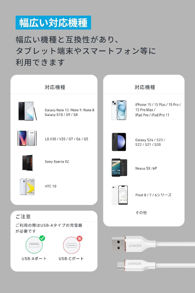 Anker USB-C & USB-A ケーブル (Flow) 1.8m ホワイト A85G1N22 A85G1N22 [USB Power Delivery対応]