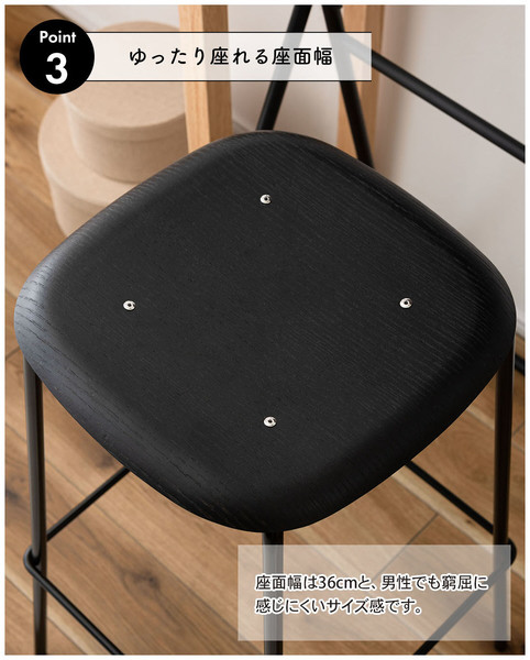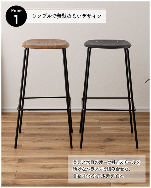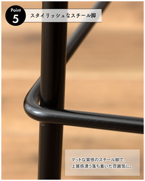 ●スタイリッシュなブラックスチールの脚部に、温かみのある木目の座面がアクセント。