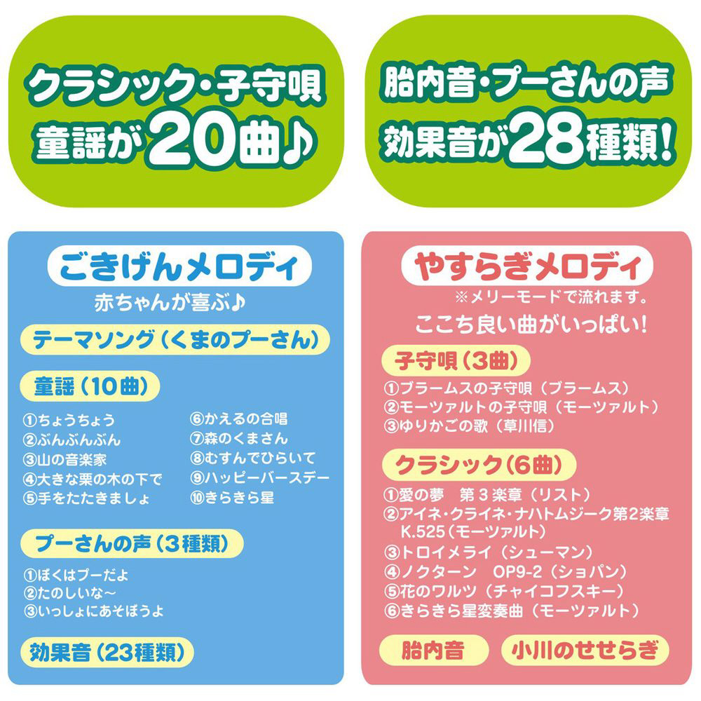 ■クラシックや子守歌、童謡、くまのプーさんのテーマ曲など20曲収録。(曲のテンポは変えられます)