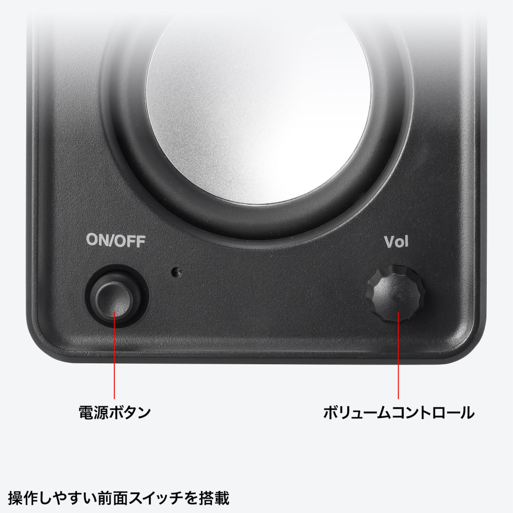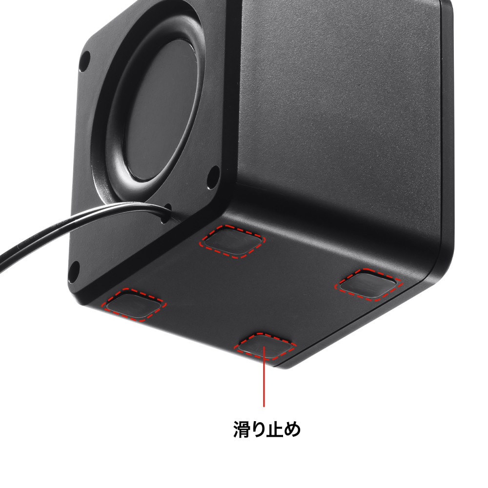 MM-SPL23UBK PCスピーカー USB電源 超コンパクトサイズ 最大出力6W パッシブラジエーター搭載 ケーブル長1m 3.5mmケーブル接続 [USB電源]