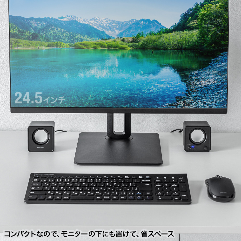 ■超コンパクトサイズなので、モニター下や机上ラック上など設置場所を選ばず省スペースに設置ができます。