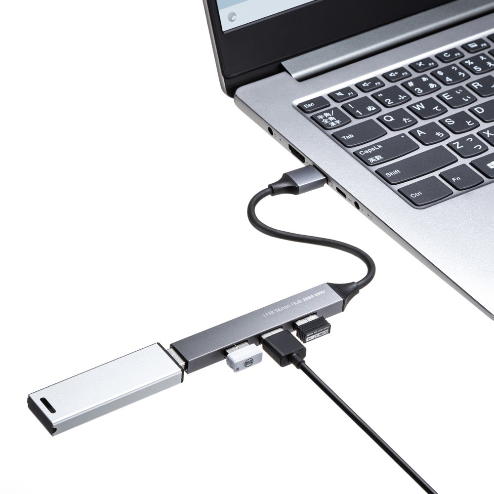■超スリムで持ち運びに便利なUSB 5Gbps 4ポートUSBハブです。