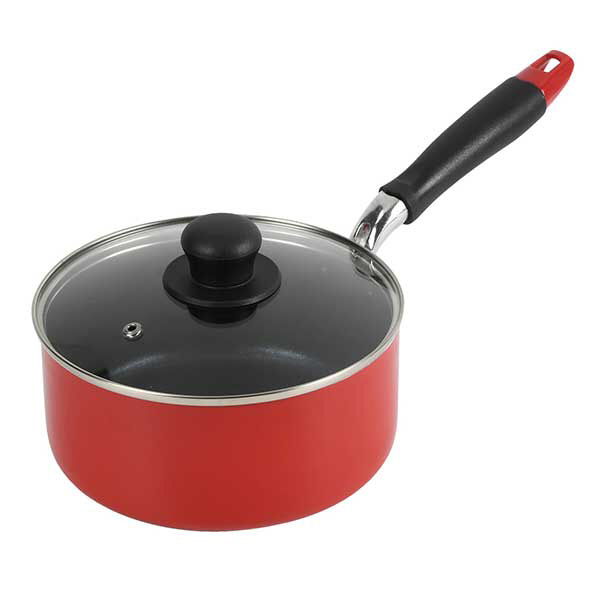 片手鍋 ガラス蓋付 18cm IH ガス火対応 モデルナ レッド ND-9458