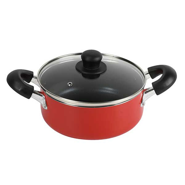 両手鍋 ガラス蓋付 20cm IH ガス火対応 モデルナ レッド ND-9459
