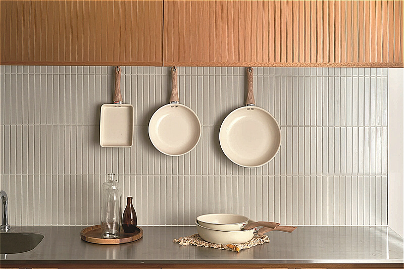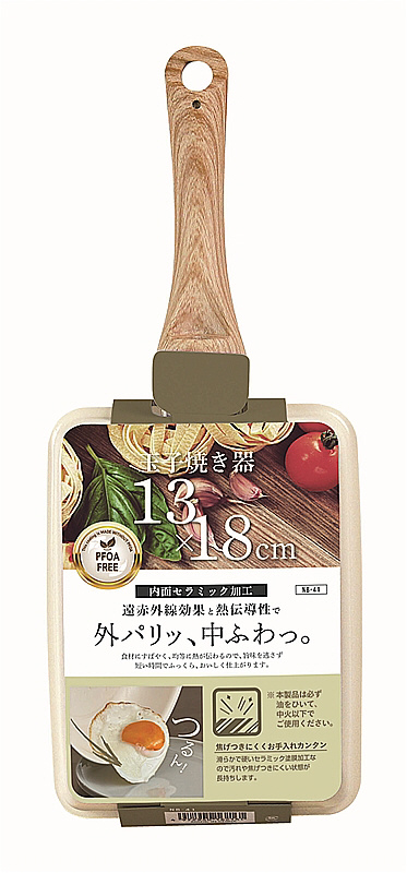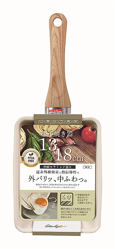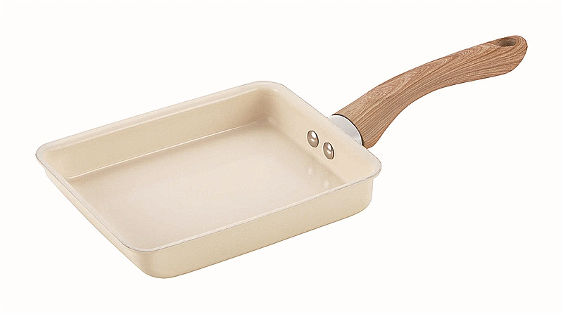 仕様3 材質:表面加工(内面)=セラミック塗膜加工、(外面)=焼付塗装、本体=アルミ(底の厚さ2.3mm)、はり底=ステンレス鋼(クロム18%)、取手=フェノール樹脂(木目調転写)