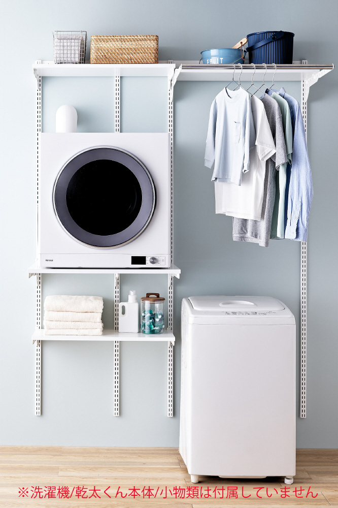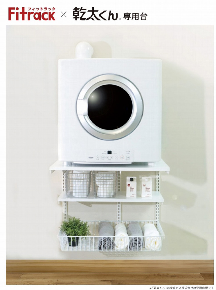 壁面収納システム「Fitrack」でガス衣類乾燥機「乾太くん」が気軽にお家にやってきます。