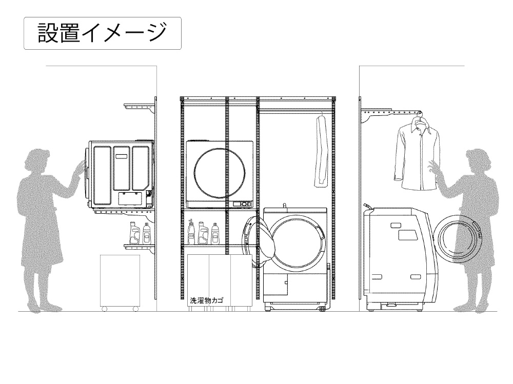 ランドリースペースや洗面所、脱衣所に設置することで、デッドスペースの多い空間を最大限活用できます。