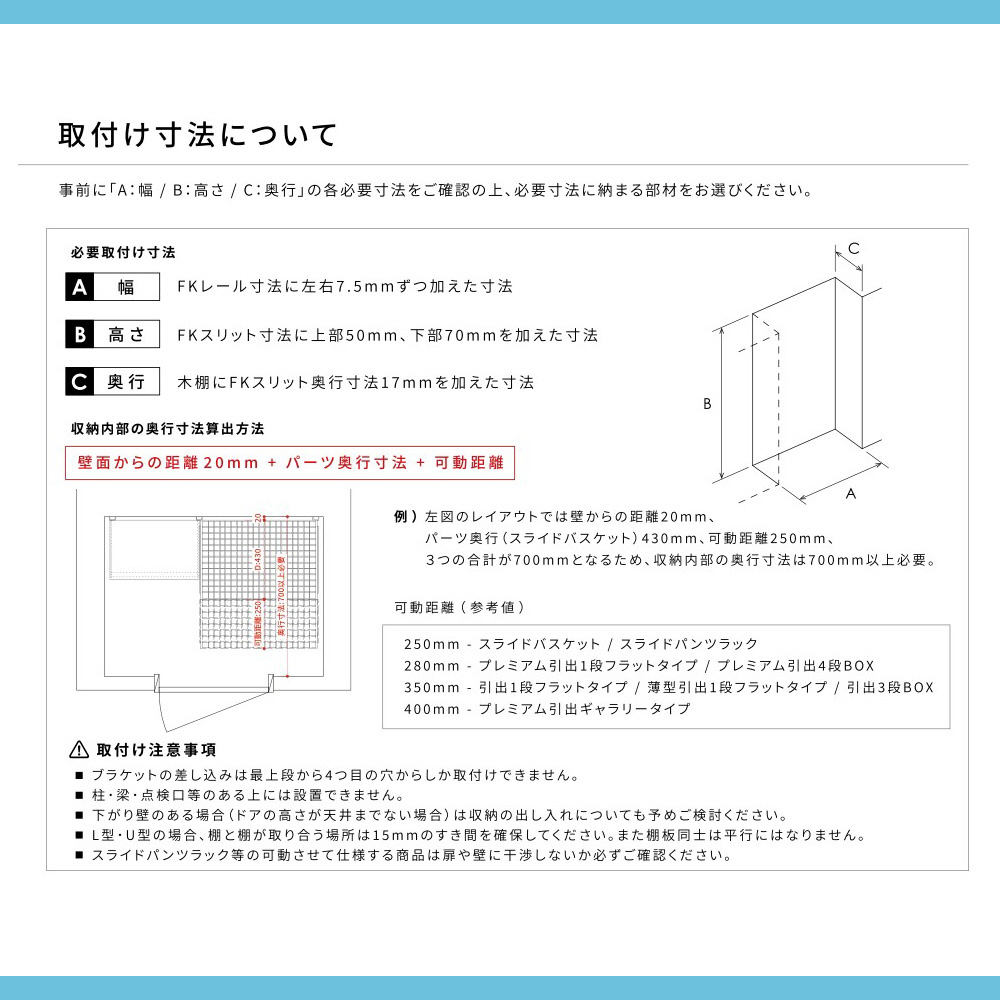 ※Fitrackの取付け推奨寸法は製品幅+3cm、高さ+15cmです。