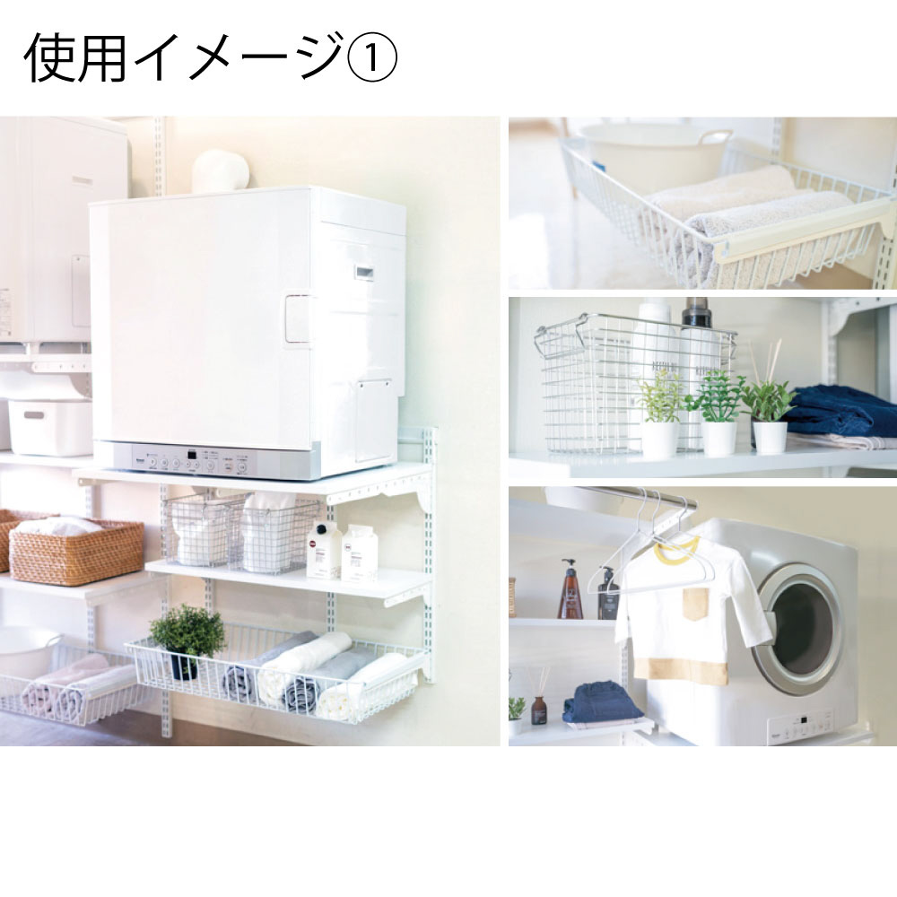 棚やパイプ、バスケット等オプションパーツが豊富で衣類やタオル、小物などの日用品の収納・整理に役立ちます。(*オプションパーツは別売です。)