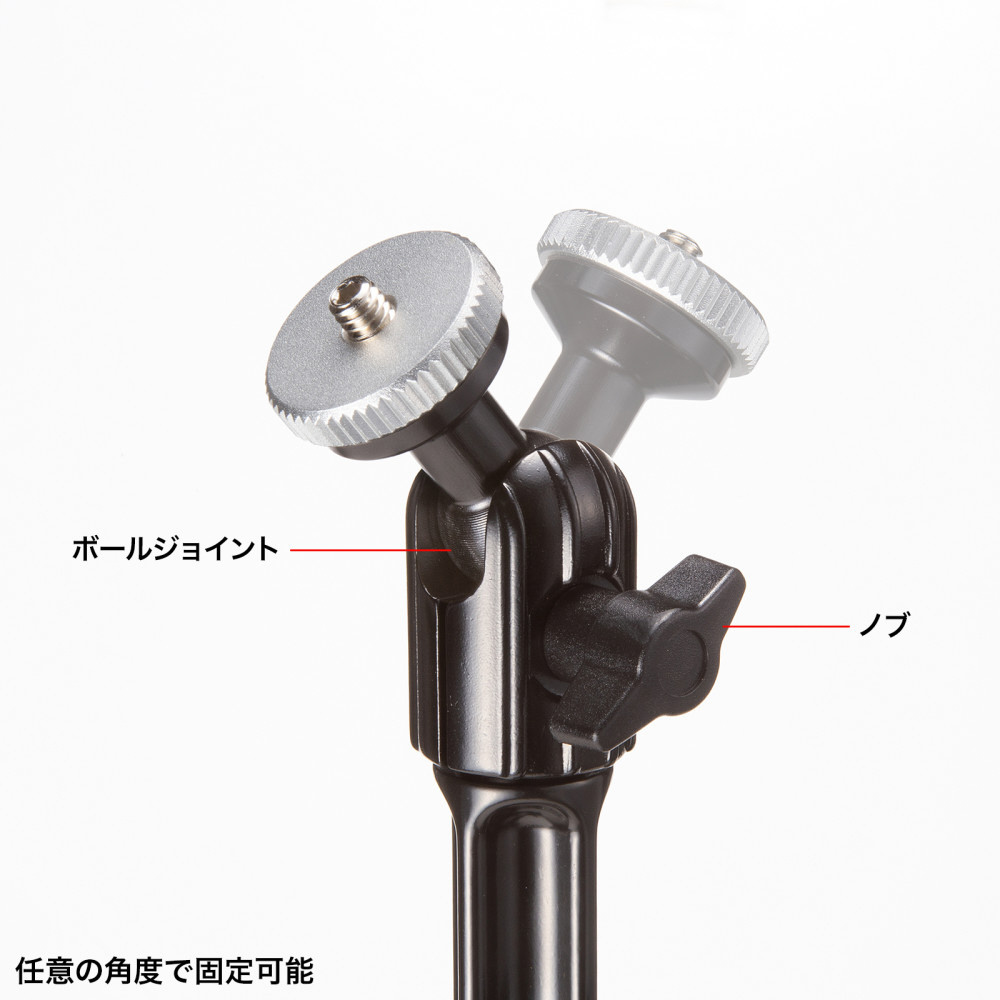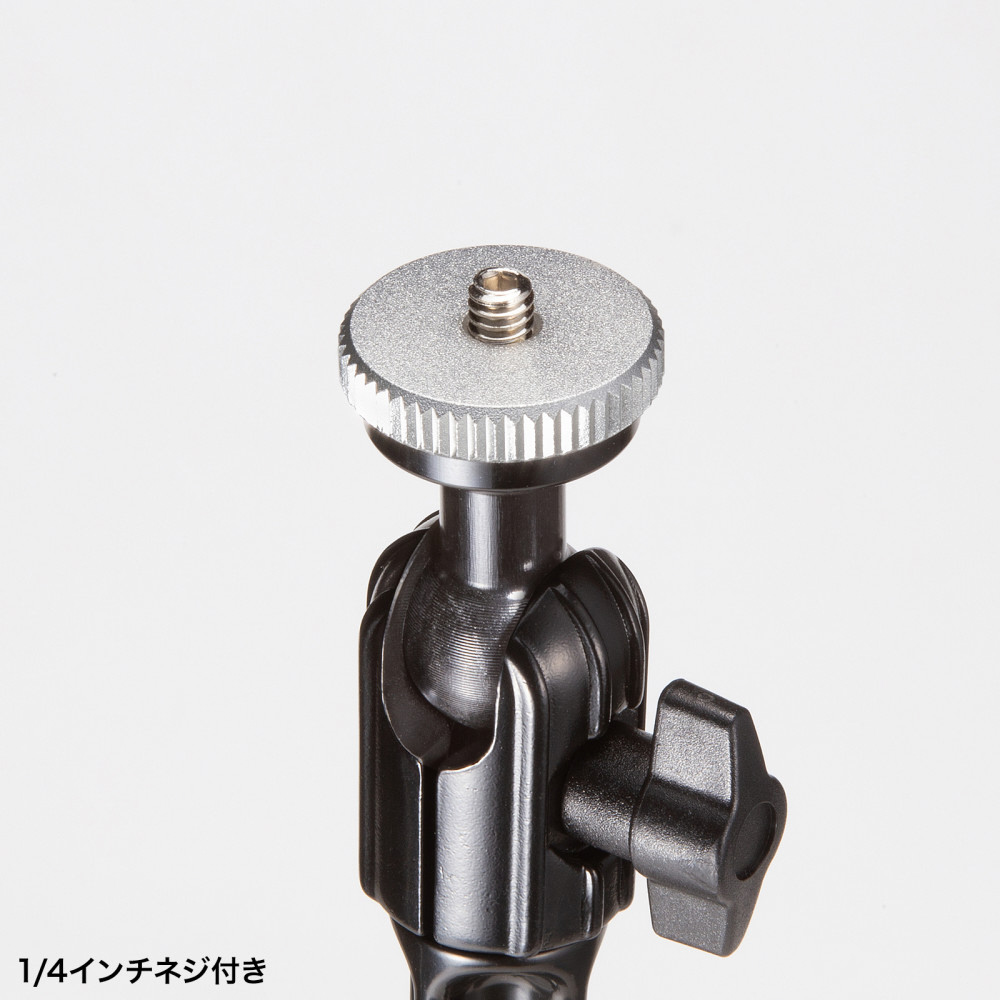 4つの関節を調整して、カメラを任意の位置に固定できるクランプ式アーム。丸・角パイプに取り付け可能。