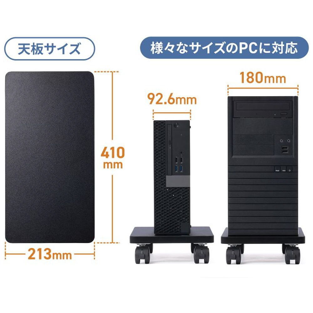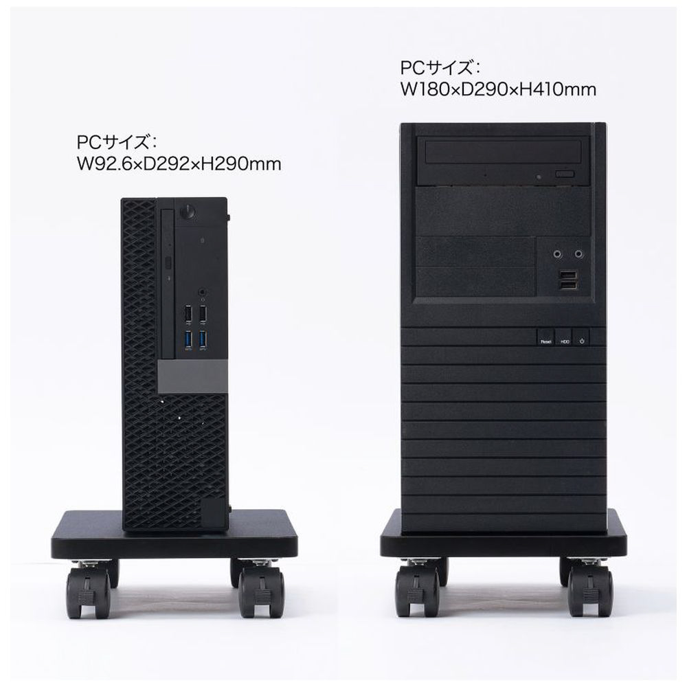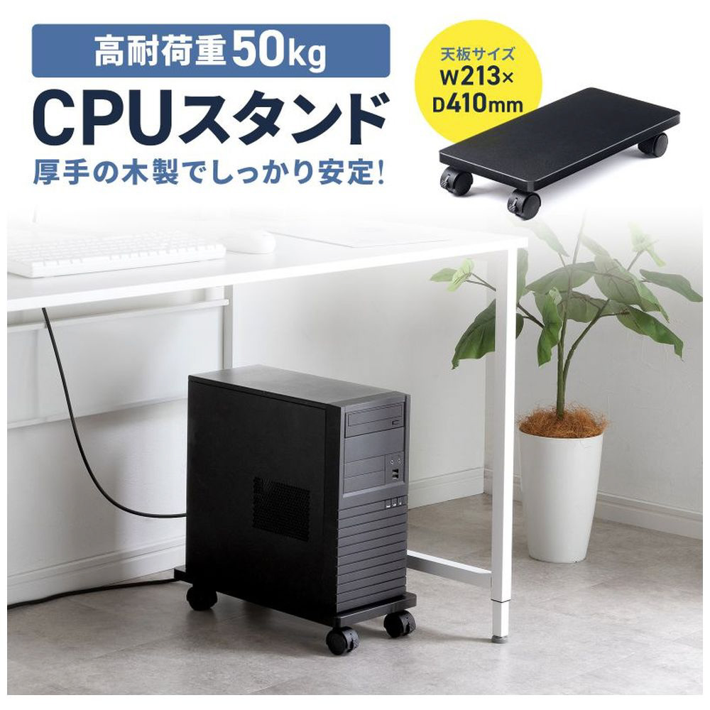 CPUスタンド デスクトップPC PCラック 幅210×奥行410mm キャスター付き 耐荷重50Kg 木製 ほこり対策 プリンター 外付けHDD [W213xD410xH72mm] ブラック CP-054