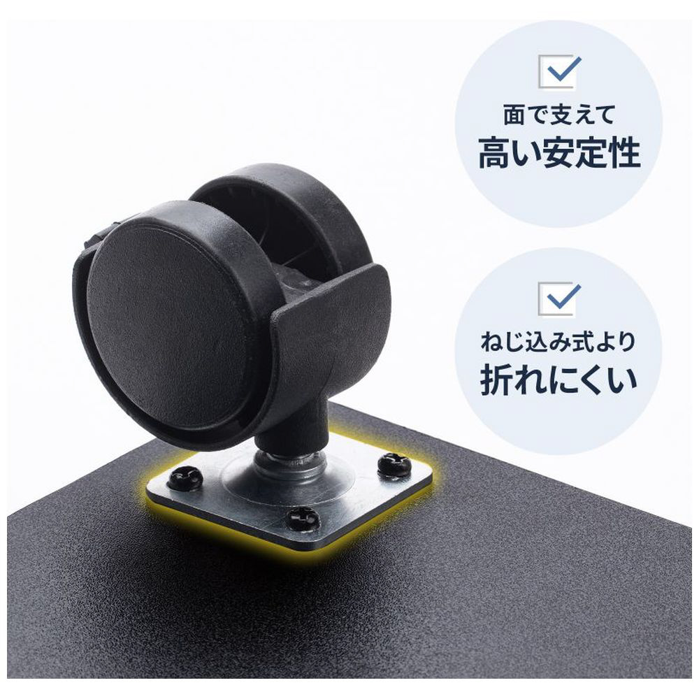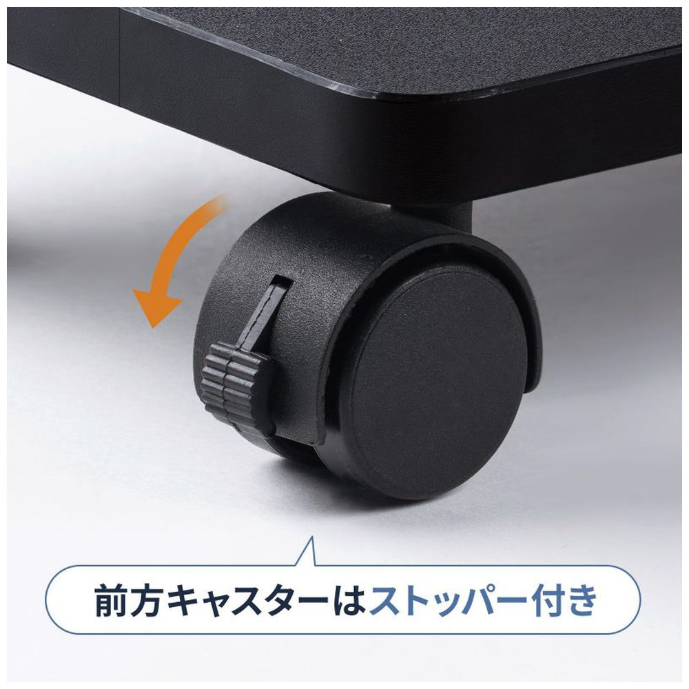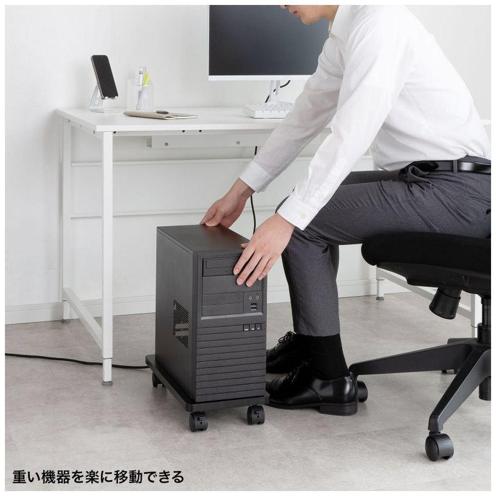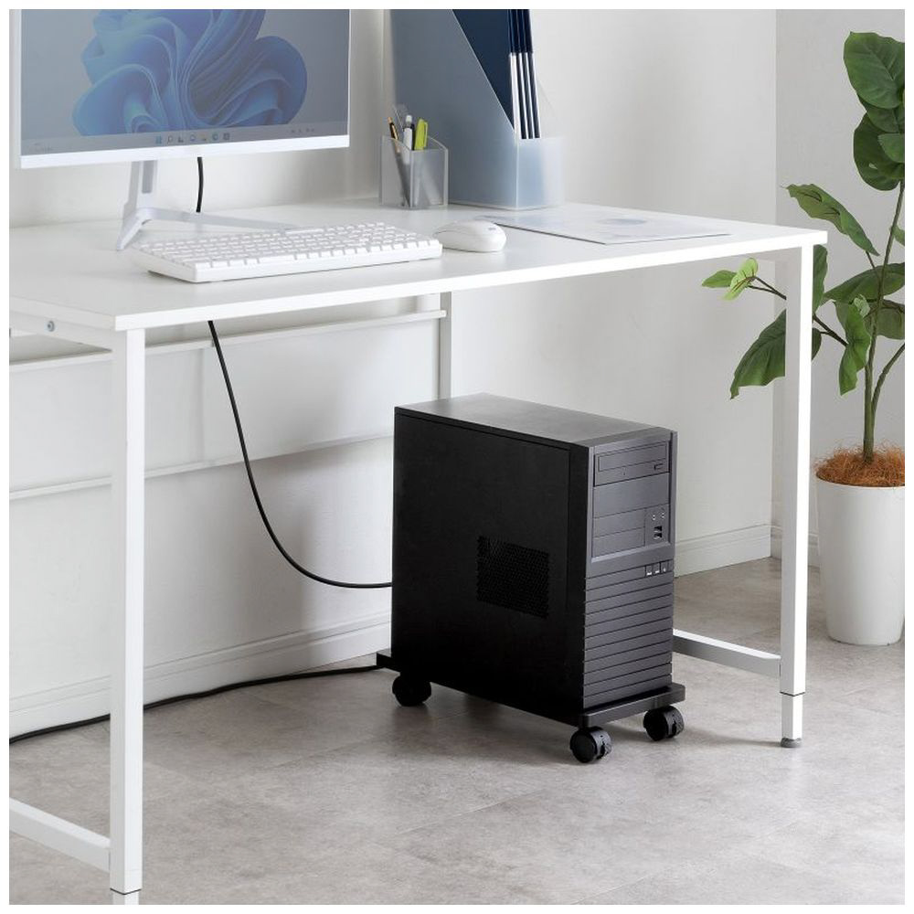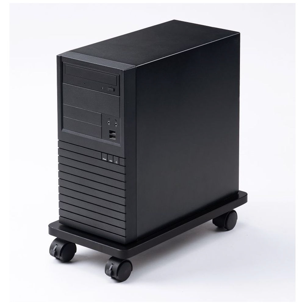 キャスター付きで移動がスムーズ、PC本体や周辺機器の整理に便利。