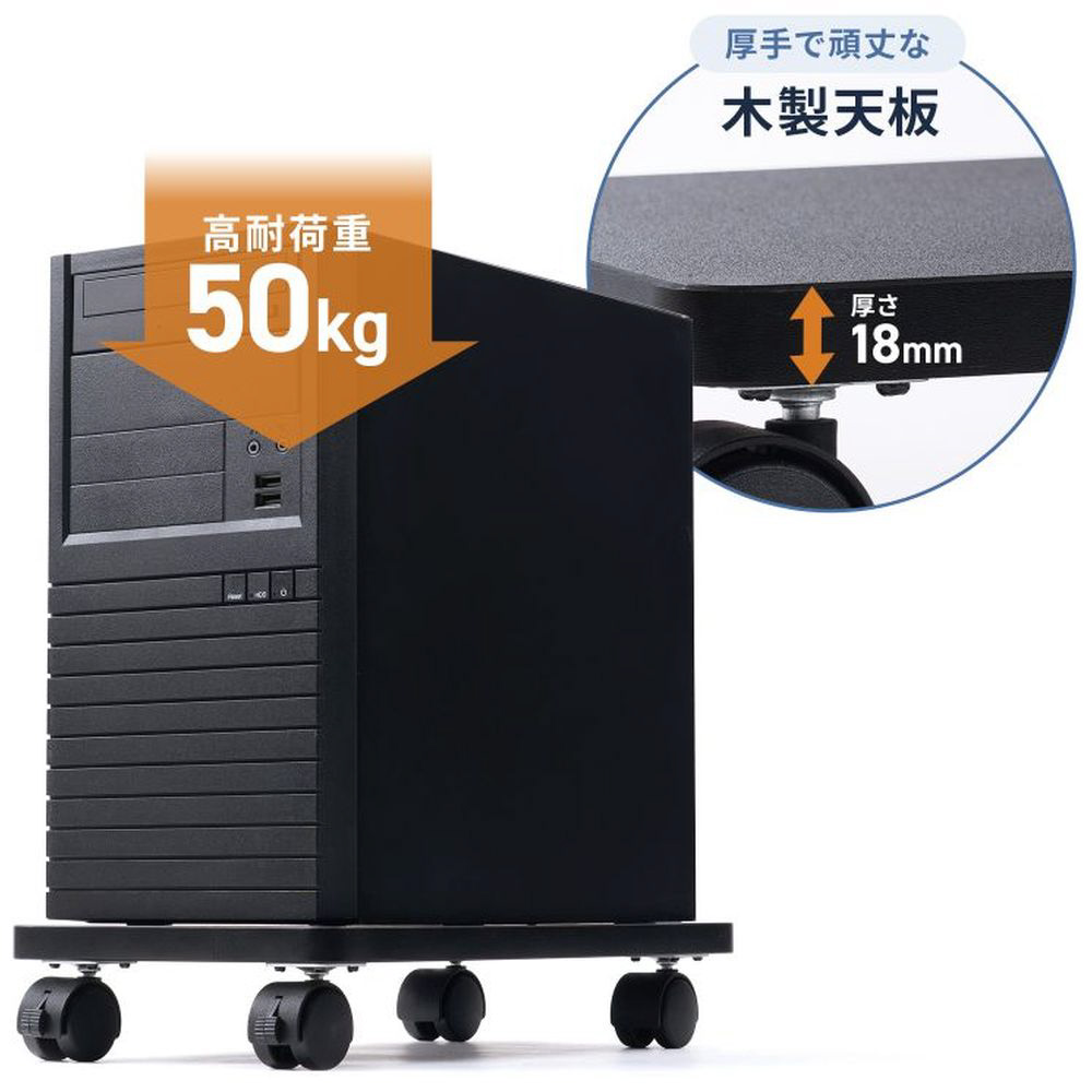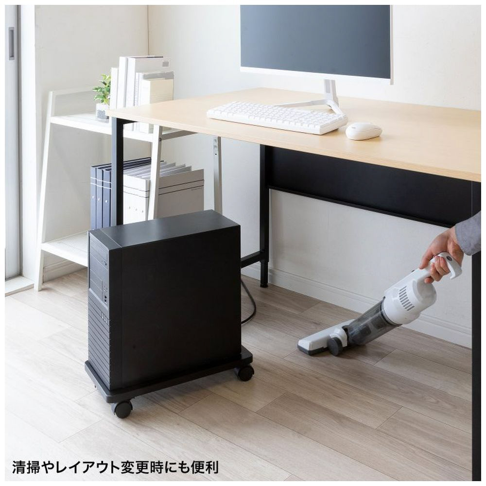 ■木製板にキャスターを取り付けたシンプルなデザインで、さまざまな環境に馴染むCPUスタンドです。