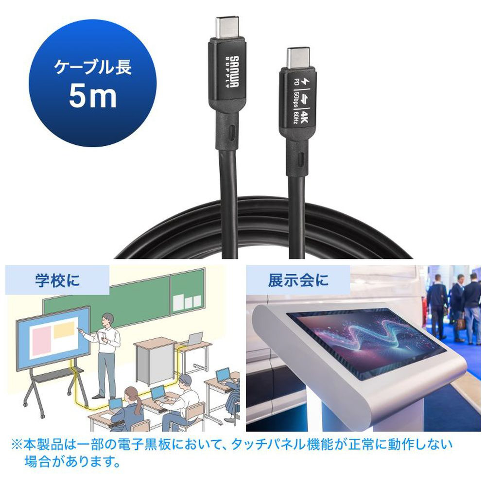 「USB5Gbps Type-Cケーブル(PD75W・DP Altモード対応・5m)」
