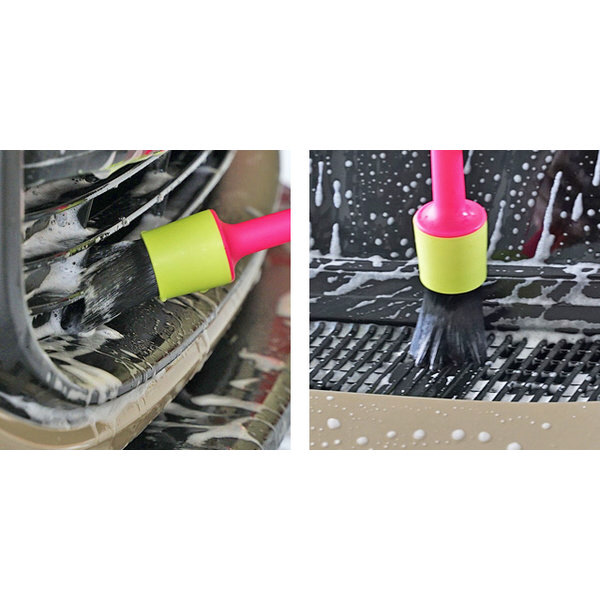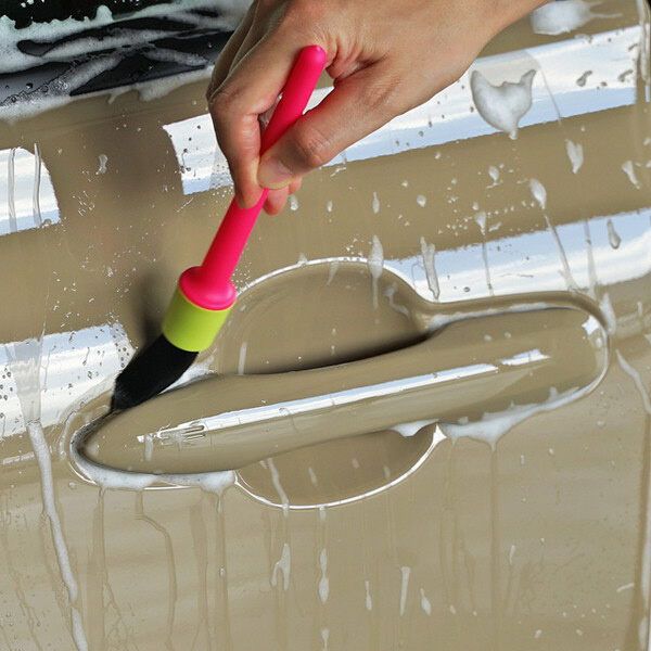 洗車スポンジでは洗い残してしまうような、複雑な形状のパーツ等細部の汚れを、すみずみまで徹底的に洗浄できる、筆形状のボディ洗浄用ディテイリングブラシ。