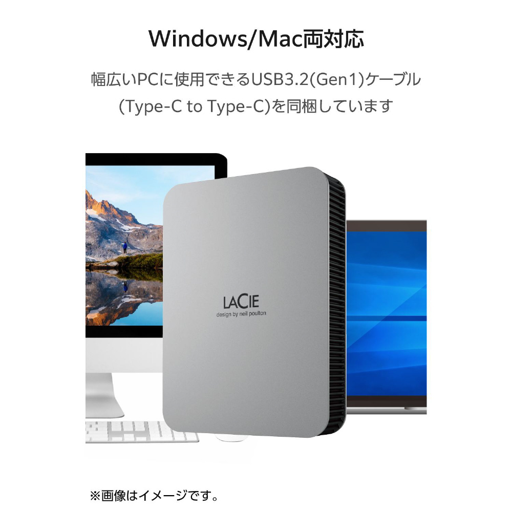 STLR5000400 LaCie 外付け ポータブル HDD 5TB Mobile Drive Secure USB Type-C 3年保証 データ復旧サービス付 熱放散型アルミ製ケース 自動バックアップ機能 【 Windows Mac iPad 対応 】