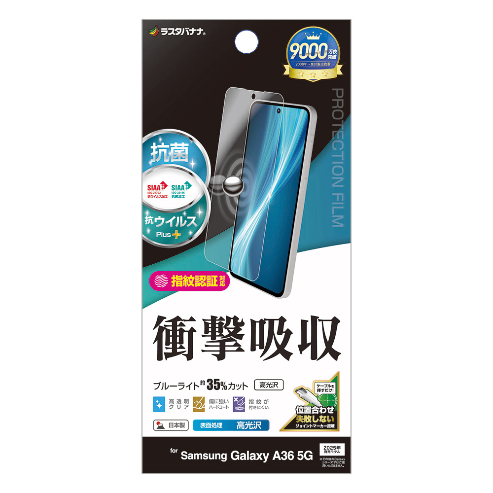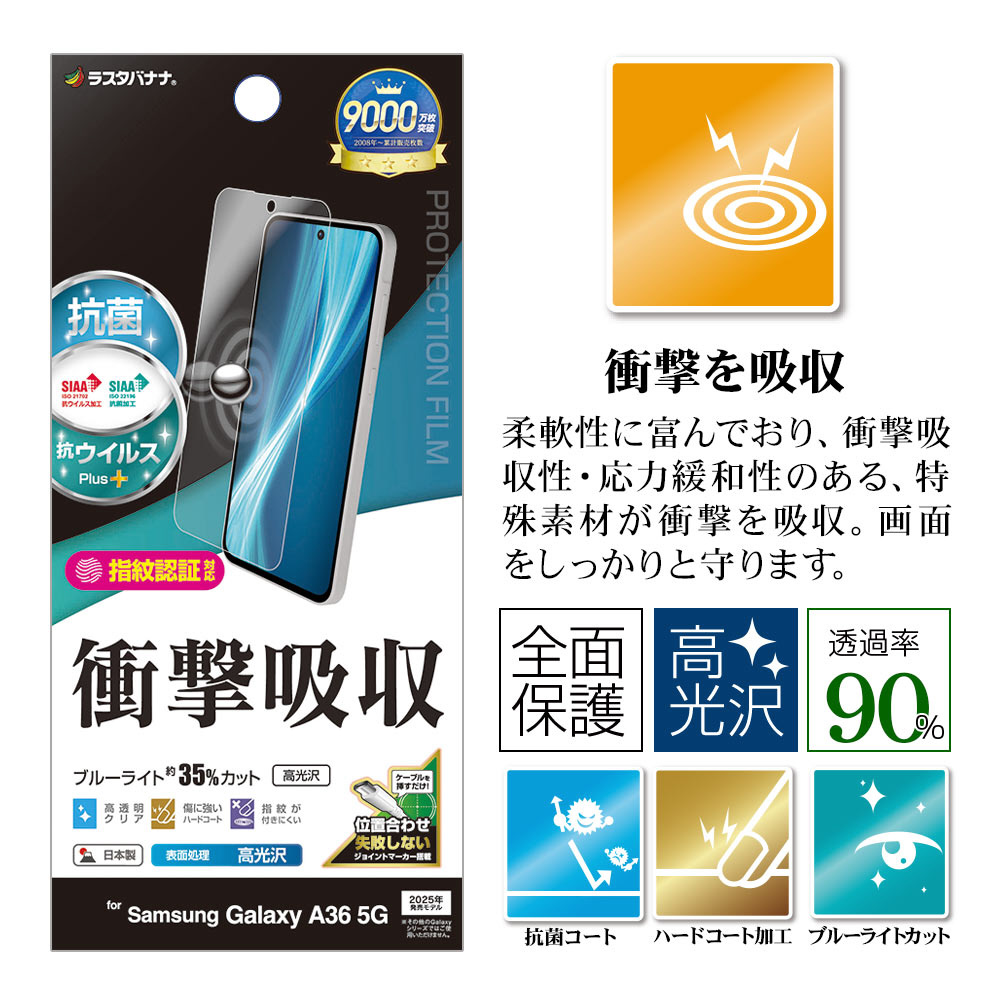 Galaxy A36 5G 衝撃吸収フルスペック 抗菌・抗ウィルス 高光沢フィルム VE4642GA36