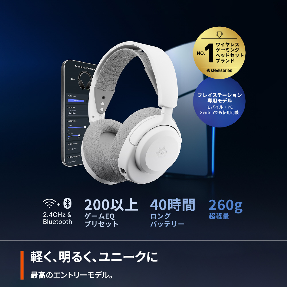 ・質量260g。Arctis Novaシリーズで最も軽量なワイヤレスヘッドセット