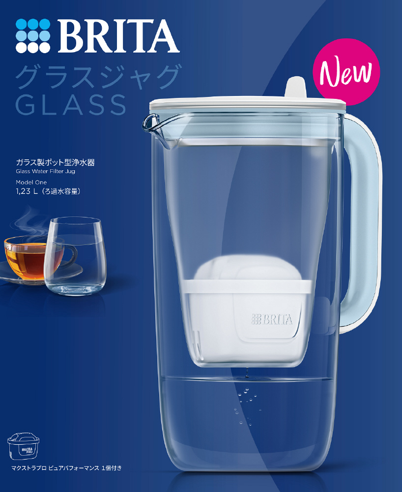 ブリタのフラッグシップモデルで耐久性に優れた軽量なガラス製、食卓やリビングに映えるデザイン、