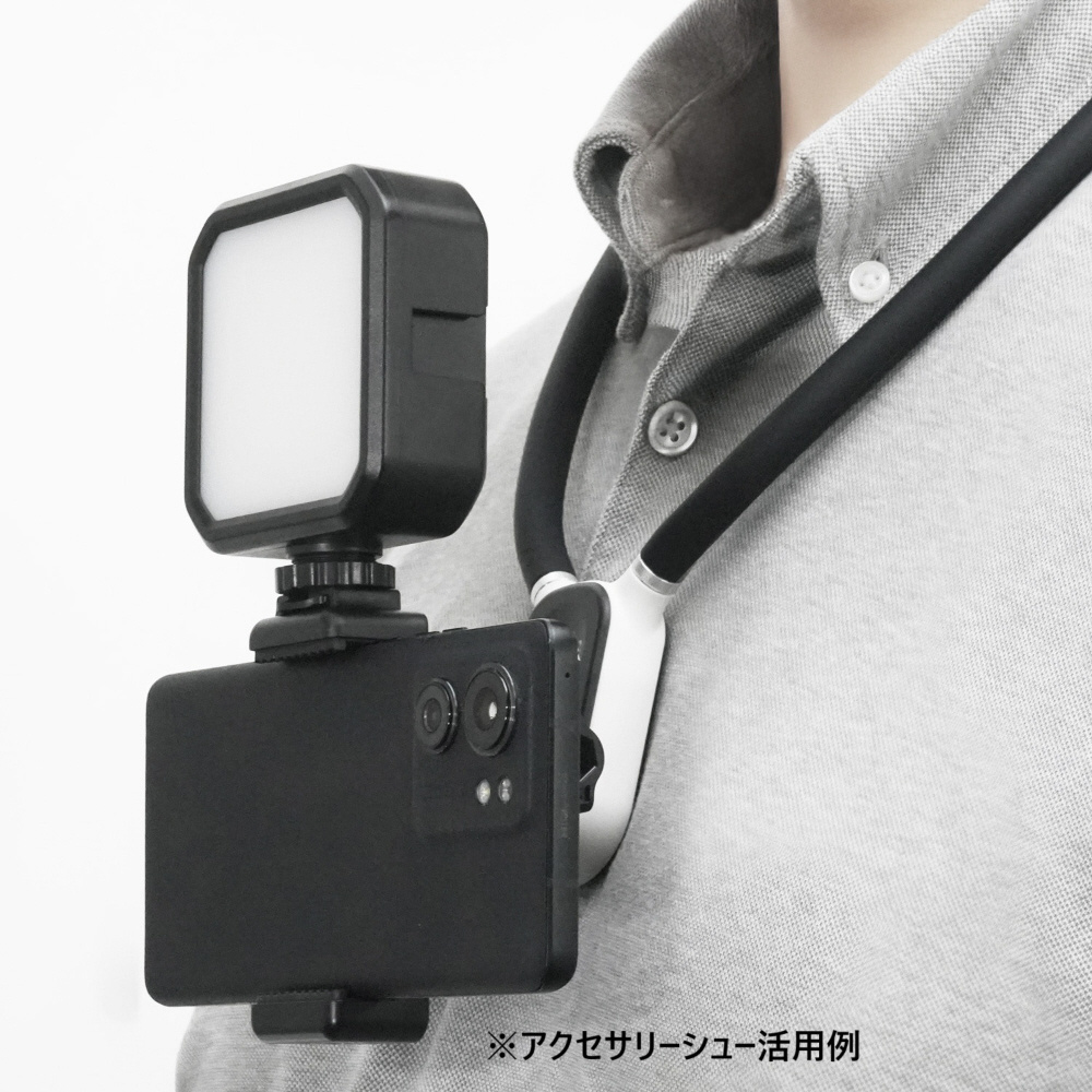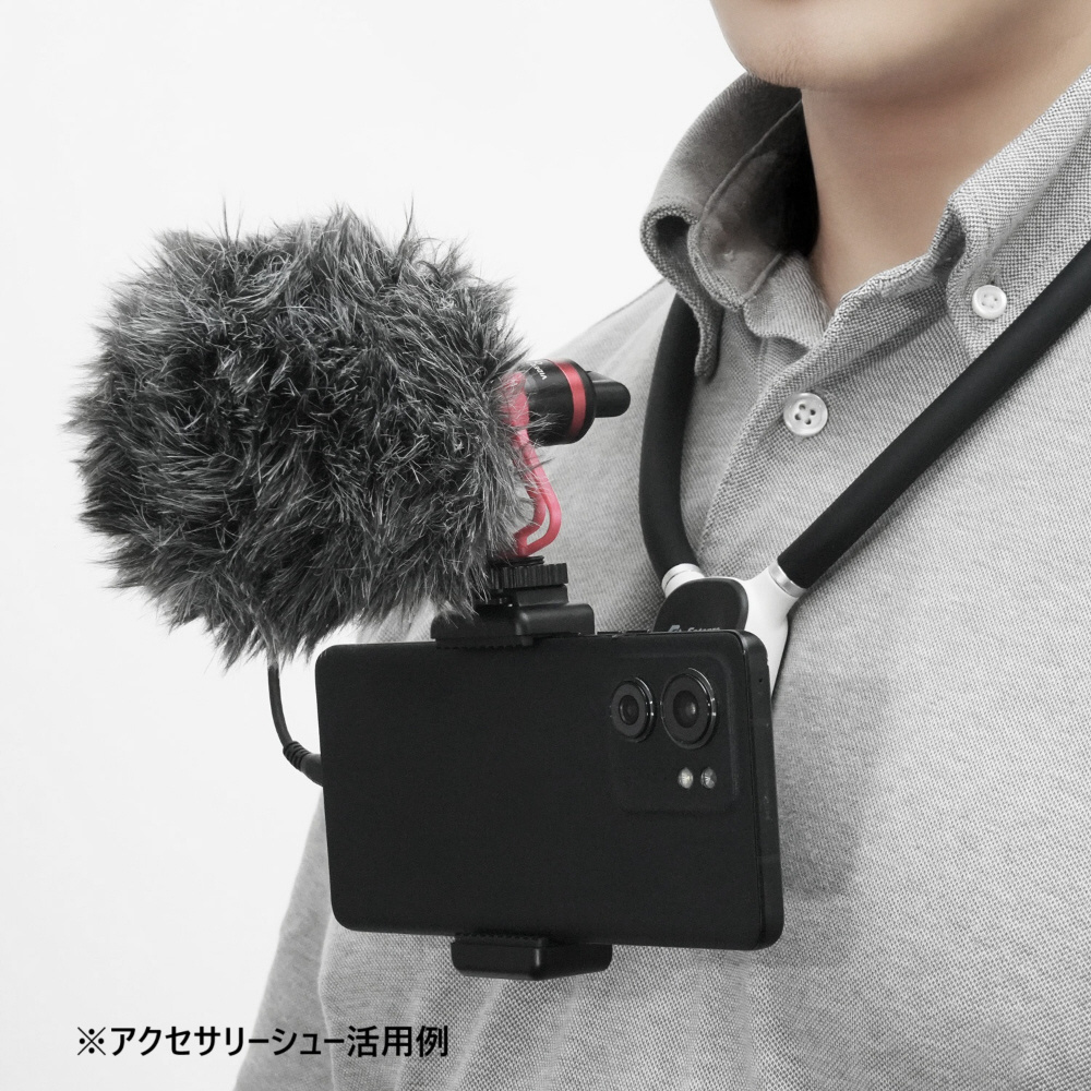 フレキシブル素材でお好みの位置にスマホやアクションカメラを装着出来ます。