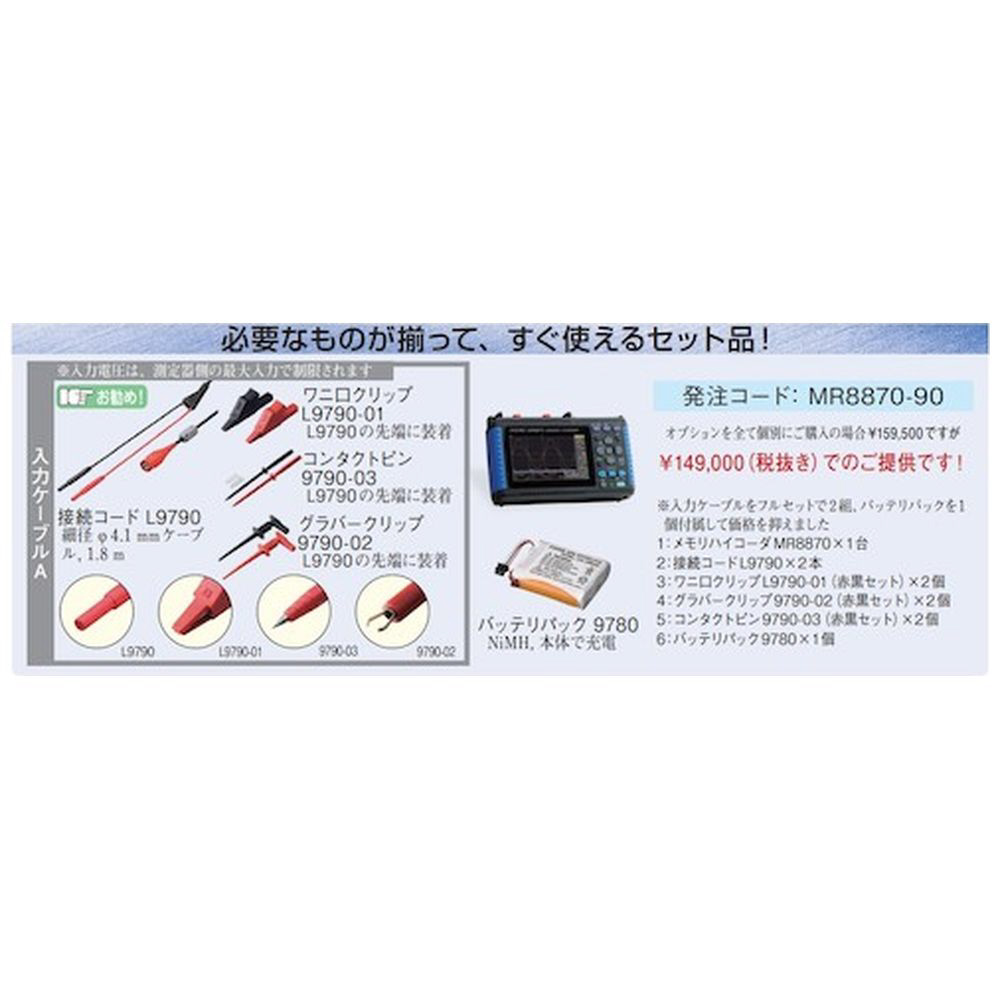 ■お得なセット販売モデル(メモリハイコーダMR8870×1、接続コードL9790×2、ワニ口クリップL9790-01×2、グラバークリップ9790-02×2、コンタクトピン9790-03×2、バッテリパック9780×1)