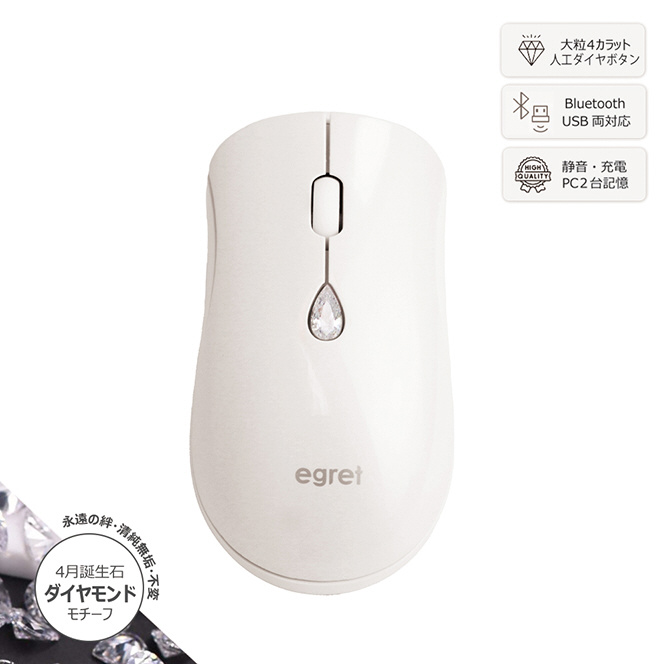 マウス 「SweetiE」EGRET(イーグレット)人工宝石ボタン付 ダイヤ/パールホワイト EM23-SJ [光学式 /無線(ワイヤレス) /6ボタン /Bluetooth・USB]