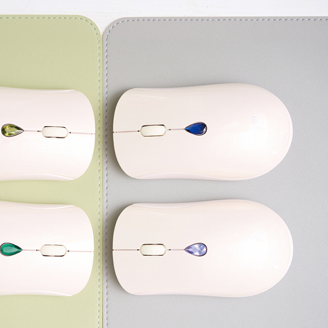 約4カラットを超える大粒のキュービックジルコニアをあしらった、贅沢仕様の美しいマウスです。デザイン性だけでなく機能性も兼ね備えたワイヤレスマウスで、仕事のモチベーションもアップ!