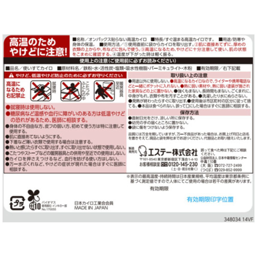 ■貼らないタイプは14時間、熱さが持続します。