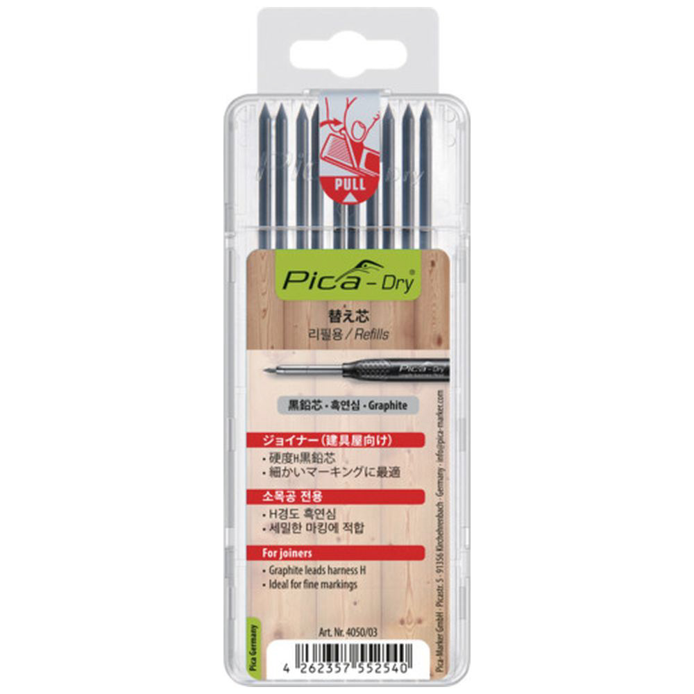 ピカマーカー 建築用シャープペンシル“Dry”用替芯 10本入り 黒2H ブリスターパック