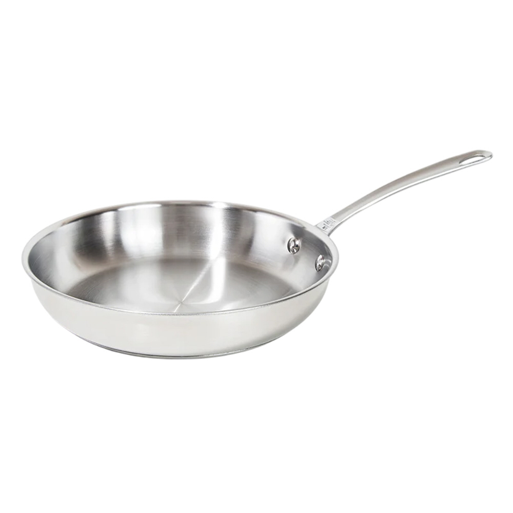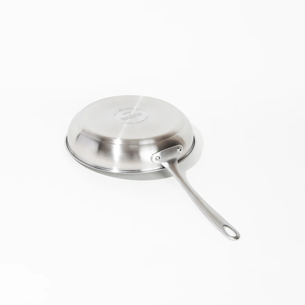 ふっ素コーティングを一切使用していない、ステンレス製の本格派フライパン。IH・ガスなど多様な熱源に対応し、長く付き合える逸品です。