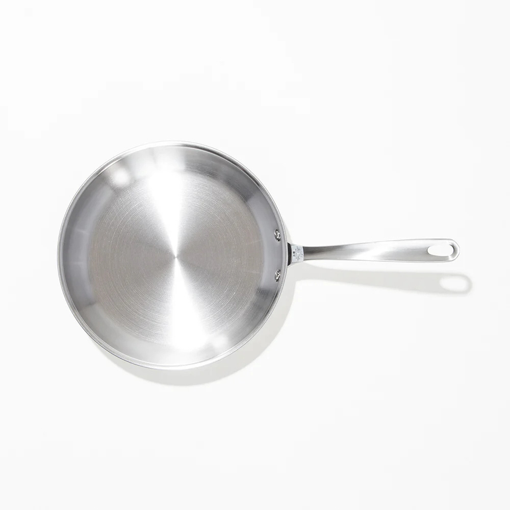 コーティング無しで、ステンレス鋼とアルミニウムの多層構造を採用したシェフズパン。IH・ガスを問わず、さまざまな熱源に対応し、家庭でもプロのような仕上がりを実現します。