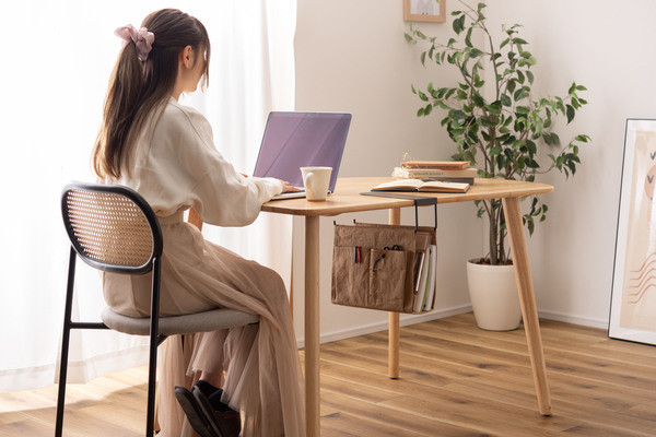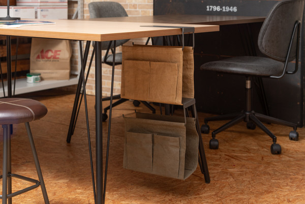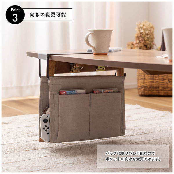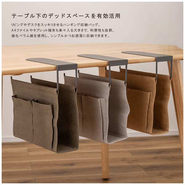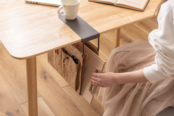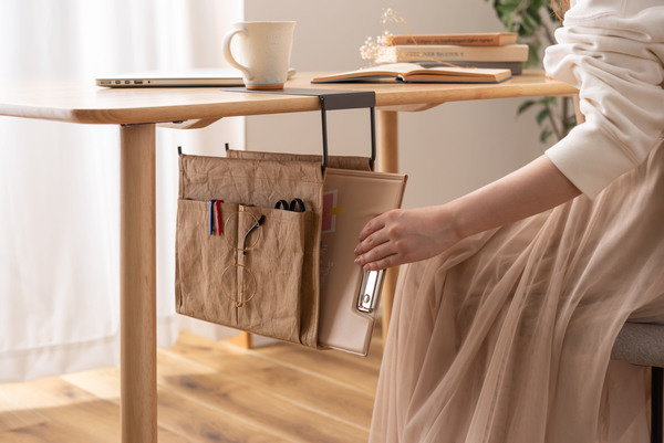 テーブル下のデッドスペースを有効活用。リビングやデスクをスッキリさせるハンギング収納バッグ。