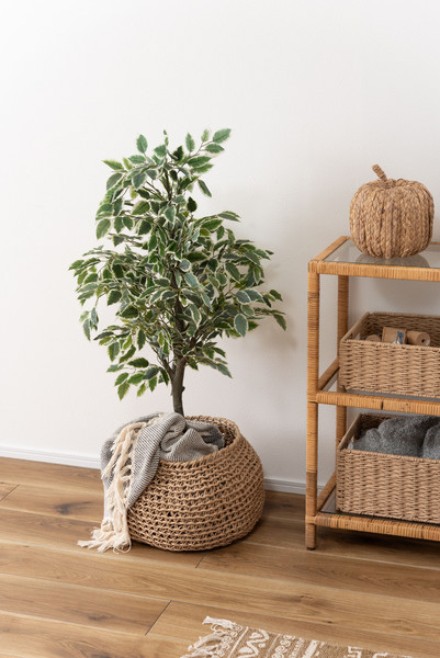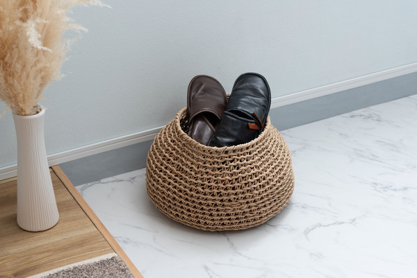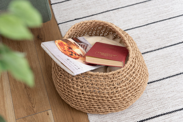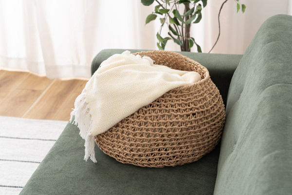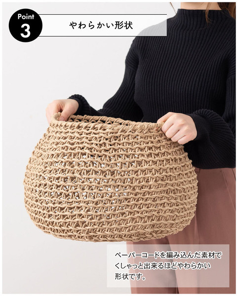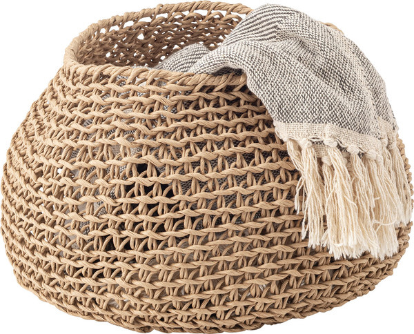 手編みの風合いとゆったりとしたシルエットは自由で個性的なライフスタイルに調和する、ボヘミアンテイストのバスケット。リビングで、玄関で、ランドリーで。収納かごとして様々な場所でフレキシブルに活躍。プランターを鉢ごと入れて、プランターカバーとして使うのもおすすめ。ペーパーコードを編み込んだ素材でくしゃっと出来るほどやわらかい形状。