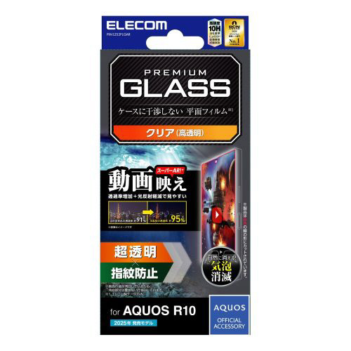 AQUOS R10 ( SH-51F ) ガラスフィルム 超透明 光反射軽減 動画映え 強化ガラス 表面硬度10H 指紋防止 気泡防止 飛散防止 PM-S252FLGAR