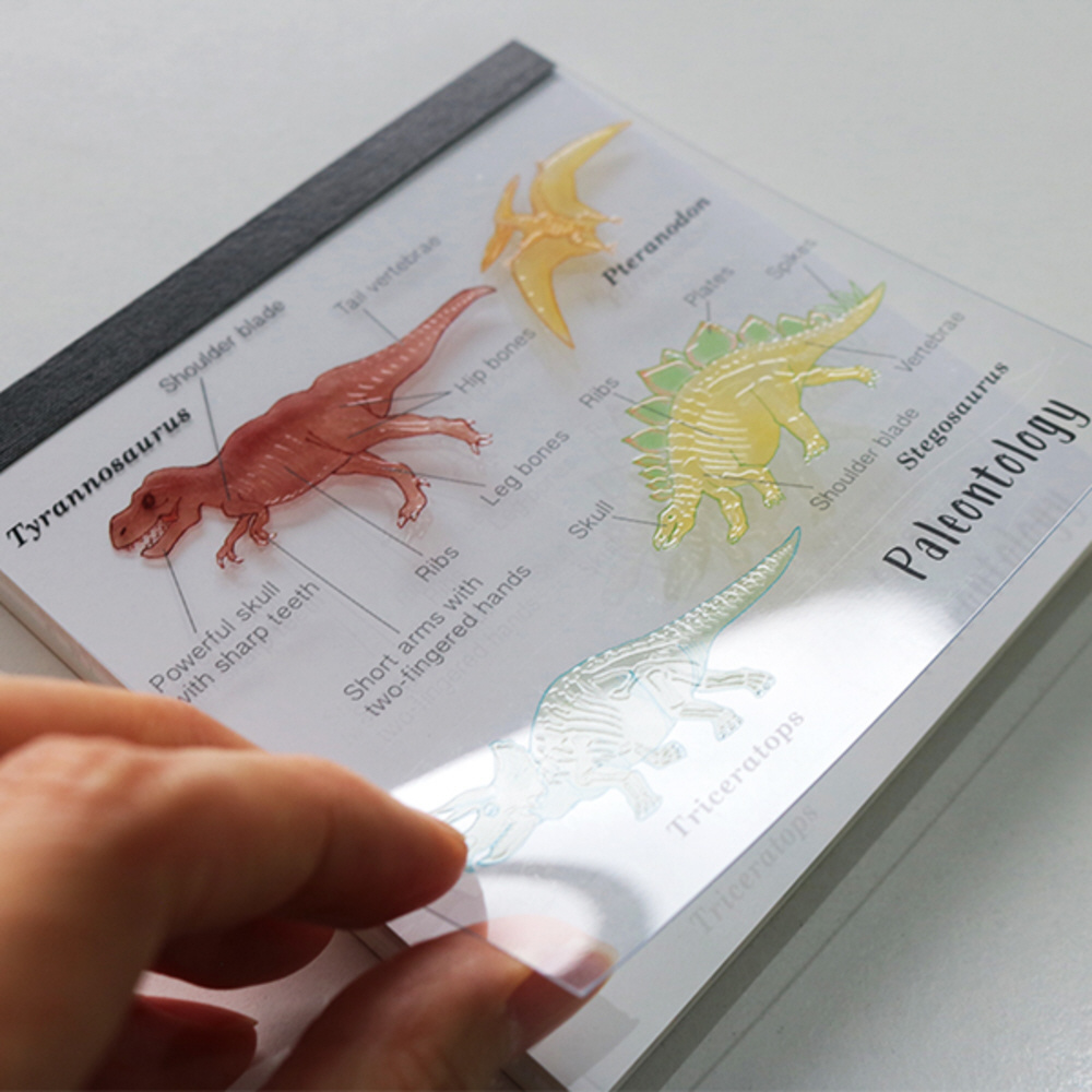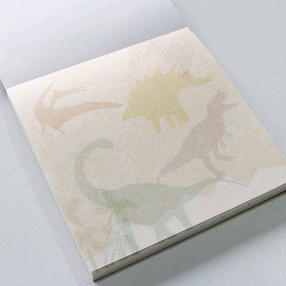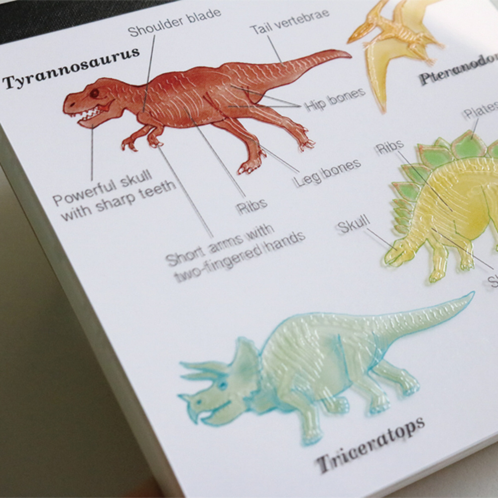 恐竜のイラストと説明を詰め込んだ、図鑑のようなメモ帳。