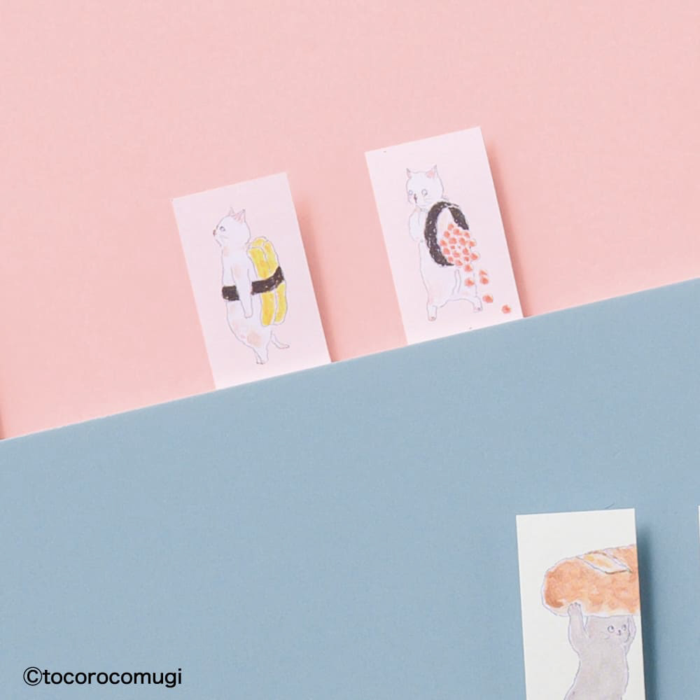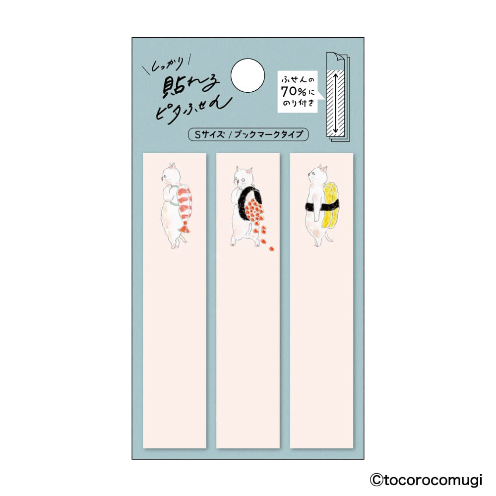 ふせんの70%の範囲をのり面にすることで、しっかり貼れてはがれ落ちにくい「しっかり貼れるピタふせん」。ゆるくてちょっぴりあやしい動物たちを描いてSNSで大人気のイラストレーター、『トコロコムギ』さんのイラストがデザインされています。